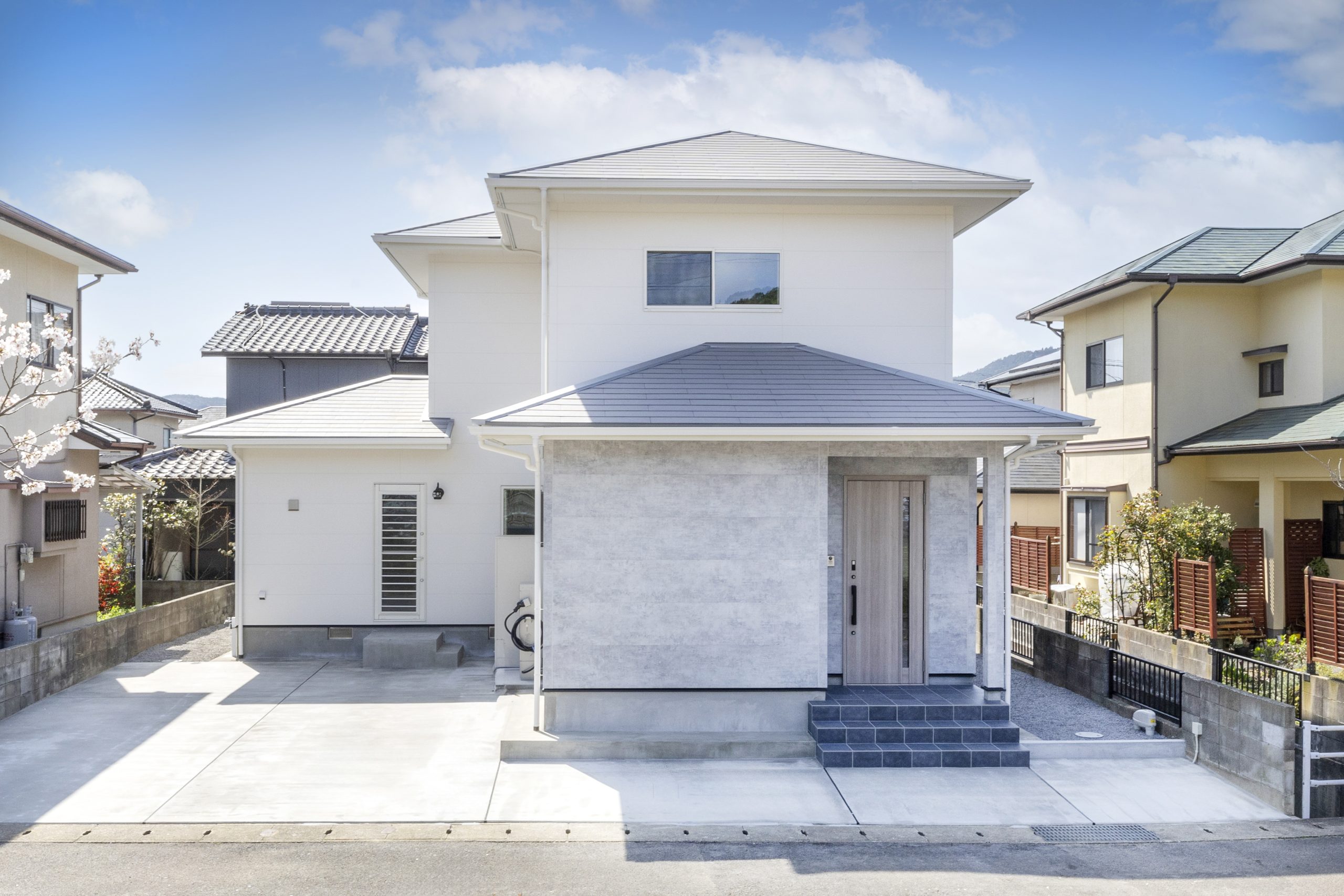 金物補強で耐震性能もアップ。外構は木を伐採し、3台分の駐車場を確保しました。